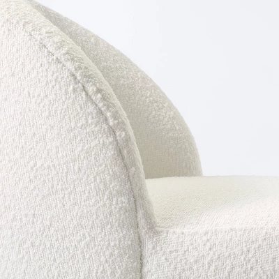 Add an interesting look to your home by refreshing your seating collection with this Pasadena Accent Chair from Threshold™ designed with Studio McGee. This armless accent chair features a curved back with covered legs for subtle style. The solid-color upholstery can be easily integrated into a variety of settings and help you sit in comfort, while a petite footprint makes this swivel accent chair a simple addition to even small spaces. Place it in your living area or study area to sit back and relax from morning to evening.