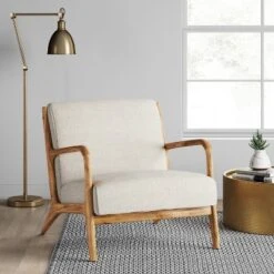 - Solid-color upholstery suits the wooden legs for an elegant look
