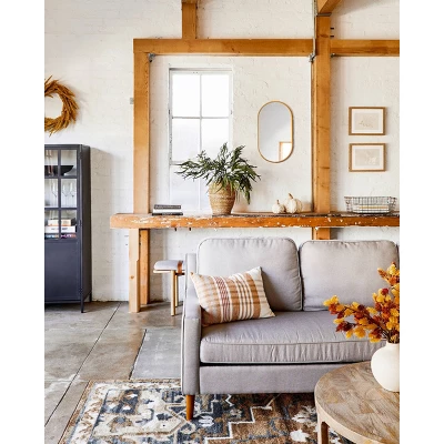 Create a sophisticated seating arrangement that’s sure to catch everyone’s eye with this Prescott Slope Arm Sofa from Threshold™. Set on natural wood legs, this loveseat has stylish solid-color upholstery with padded seat and back to provide a comfortable place to sit. Perfect to seat up to three people, this wooden-frame sofa makes an elegant addition to your living room seating arrangement, and looks especially great when paired with a coordinating coffee table or ottoman to complete the look.